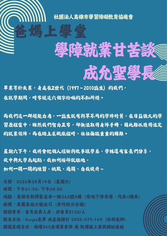 .版權所有:社團法人高雄市學習障礙教育協進會.瀏覽人數:371544 .聯絡地址:(800)高雄市新興區忠孝一路262號3樓 .聯絡電話:(07) 556-9169 .傳真電話: .IE7.0,Firefox.20以上版本.最佳螢幕解析度 1024x768 |隱私權宣告|資訊安全政策|